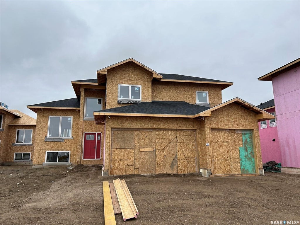 Modified bi-level home. Great opportunity to live in the growing community of Warman close to the Legends Golf Course, Sports Centre, grocery stores and all other amenities. 1,735 sqft on 2 levels above grade. Spacious/open concept with extra high 9’ ceilings up and 9' down giving it a light/bright/ modern feel. Main level is perfect for entertaining guests. Kitchen has pantry, tile backsplash, quartz countertops and ample cupboard storage. Massive primary bedroom on a separate level. You'll love the luxurious en-suite bathroom off the bedroom with double sink, soaker tub & beautiful custom tile shower. Lots of high-end finishings throughout with upgraded vinyl flooring, unique fixtures, and tile work. Other notable features include a gorgeous electric fireplace in the living room & a spacious deck (vinyl deck/ no stairs). Also has an insulated triple attached garage and a triple concrete driveway. Lovely street appeal. Established local builder, Blanket New Home Warranty, call today!